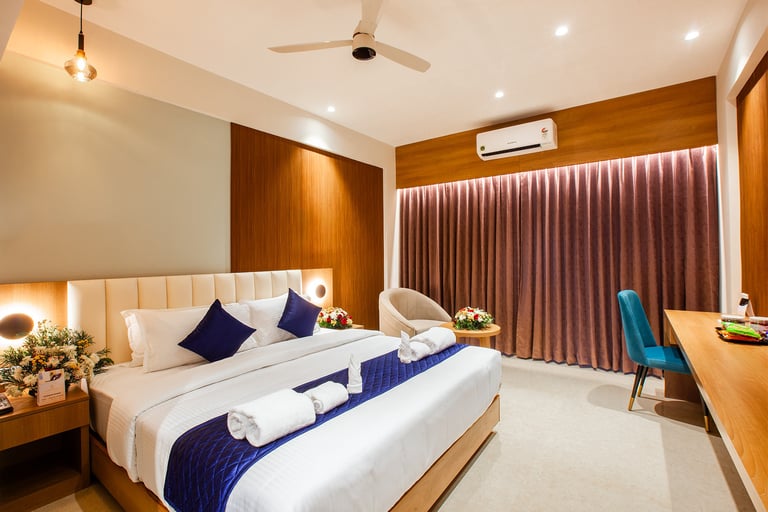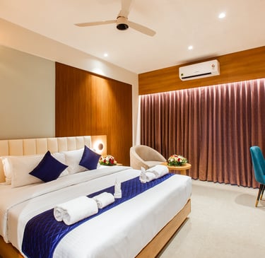 At Dreamland Residency, every room is thoughtfully curated to offer a restful stay. Choose from our Standard, Deluxe, or Suite Rooms, each crafted with elegant décor, soothing lighting, and essential modern amenities. Whether you prefer single or double accommodation, every room promises warm hospitality, impeccable cleanliness, and a serene environment to unwind.